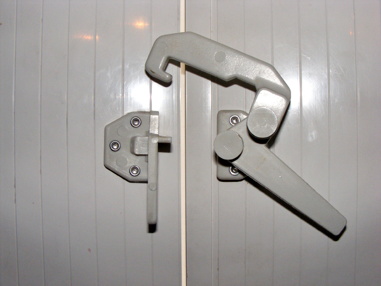 C'est un genre de crochet situé au milieu du volet, qui est mis sur un volet (A), qui vient accrocher l'autre volet (B). (C'est tout simple).