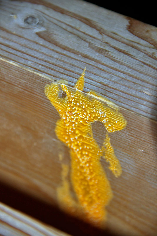 Question travaux menuiserie : Avis trace orange sur poutre en bois